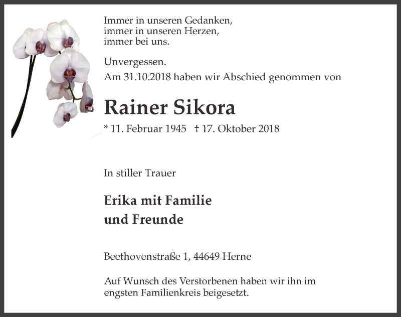 Pflanzen Sie einen Gedenkbaum für Rainer Sikora