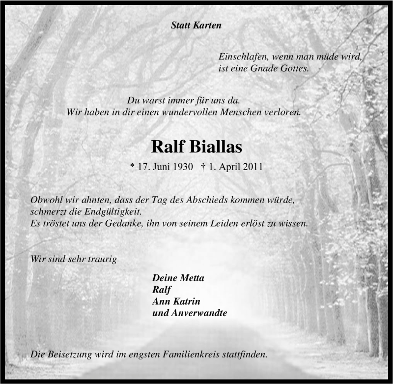 Pflanzen Sie einen Gedenkbaum für Ralf Biallas