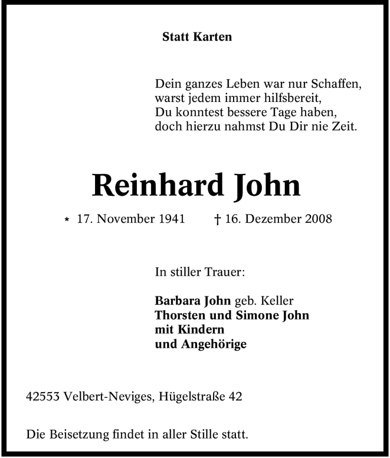 Pflanzen Sie einen Gedenkbaum für Reinhard John