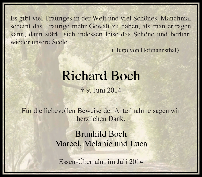Pflanzen Sie einen Gedenkbaum für Richard Boch