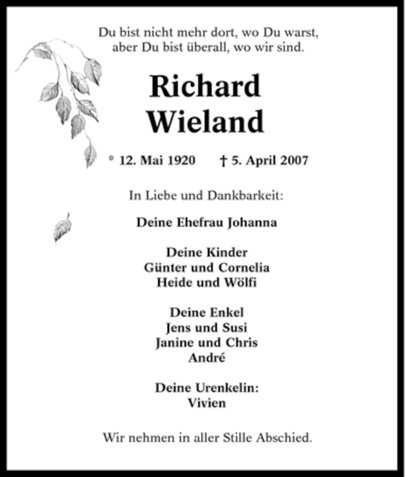 Pflanzen Sie einen Gedenkbaum für Richard Wieland