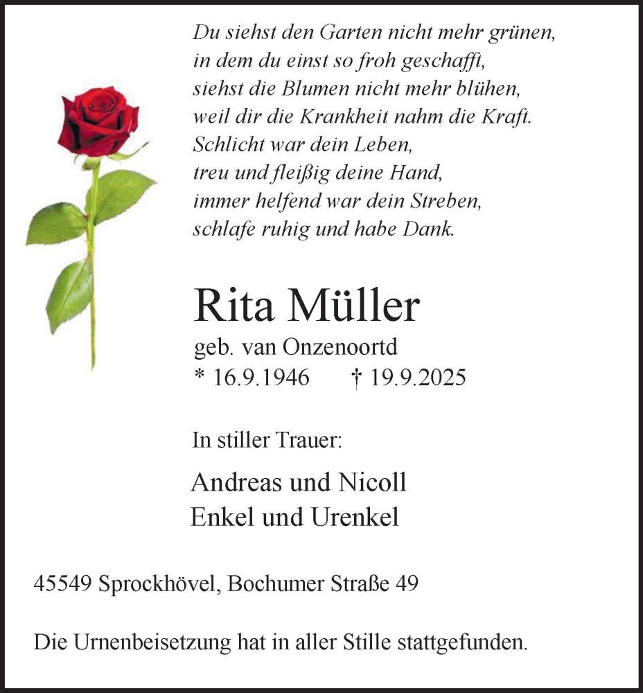 Hier finden Sie alle Traueranzeigen aus der Zeitung, die bisher für Rita Müller erschienen sind. Weitere Traueranzeigen, die in der Zeitung erscheinen, werden hier ebenfalls aufgelistet