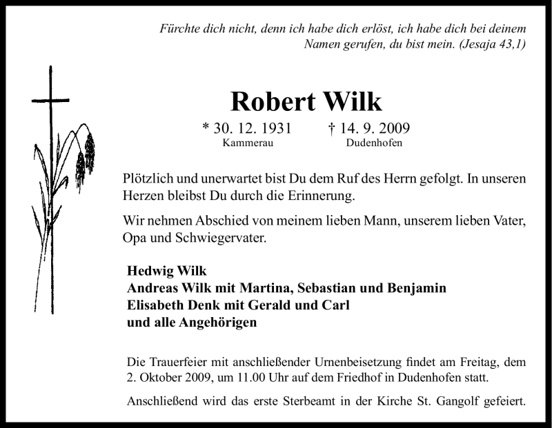 Pflanzen Sie einen Gedenkbaum für Robert Wilk