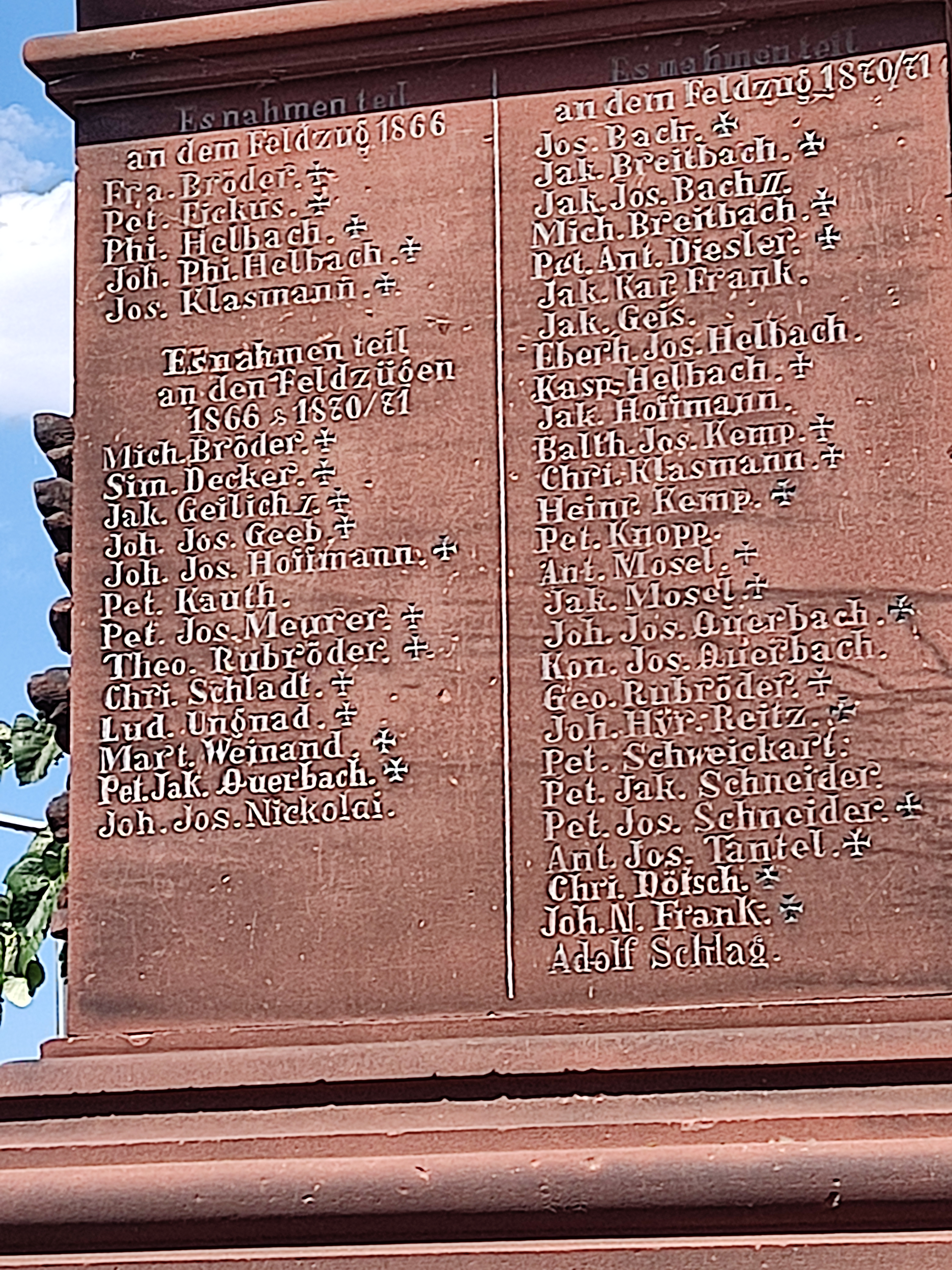 Ursprungsort der Familie Geilich - Kriegerdenkmal im Ort mit Namen der Gefallenen: Jakob Geilich, Feldzüge 1866 und 1870/71.