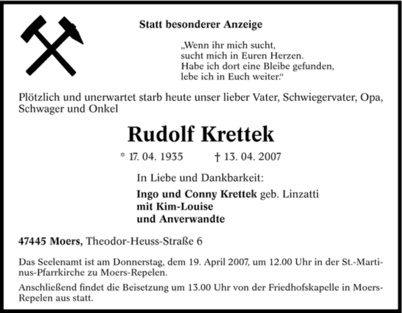 Pflanzen Sie einen Gedenkbaum für Rudolf Krettek