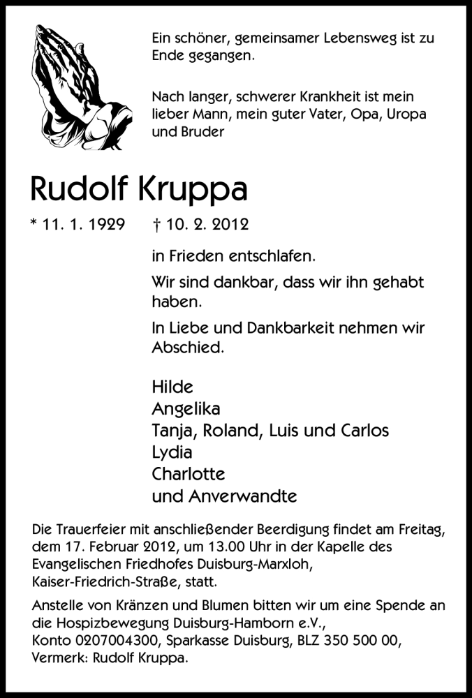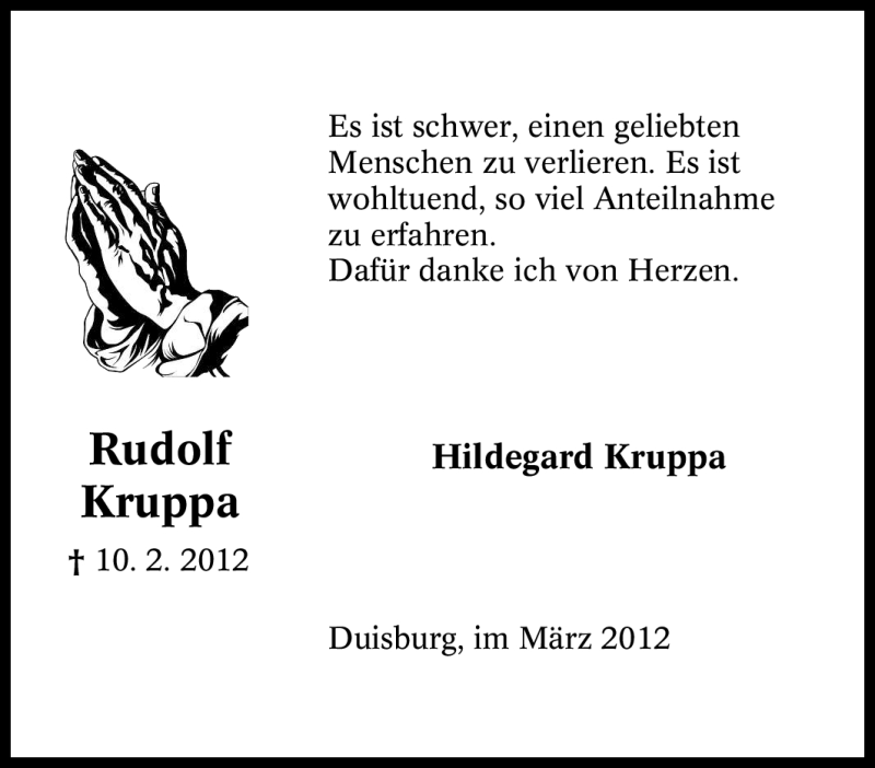 Pflanzen Sie einen Gedenkbaum für Rudolf Kruppa