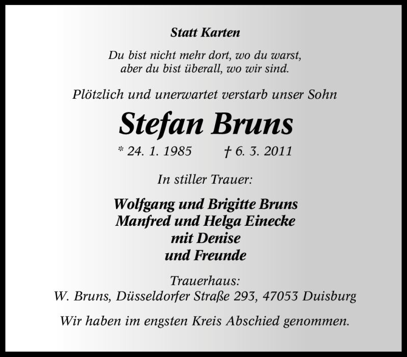 Pflanzen Sie einen Gedenkbaum für Stefan Bruns