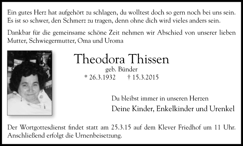 Pflanzen Sie einen Gedenkbaum für Theodora Thissen