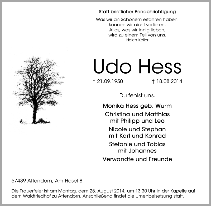 Pflanzen Sie einen Gedenkbaum für Udo Hess