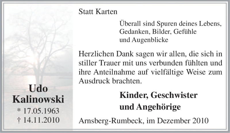 Pflanzen Sie einen Gedenkbaum für Udo Kalinowski