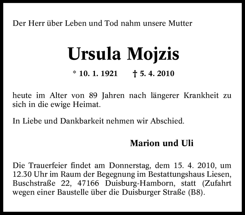 Pflanzen Sie einen Gedenkbaum für Ursula Mojzis