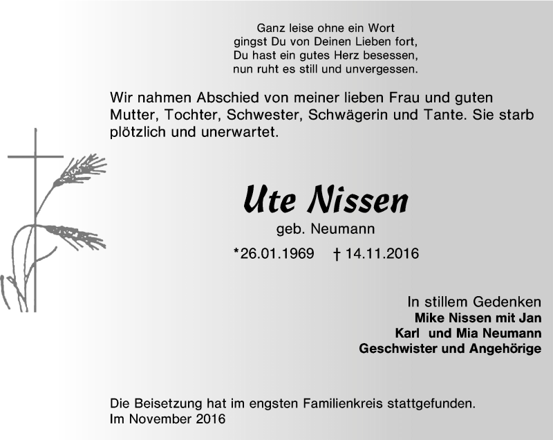 Pflanzen Sie einen Gedenkbaum für Ute Nissen