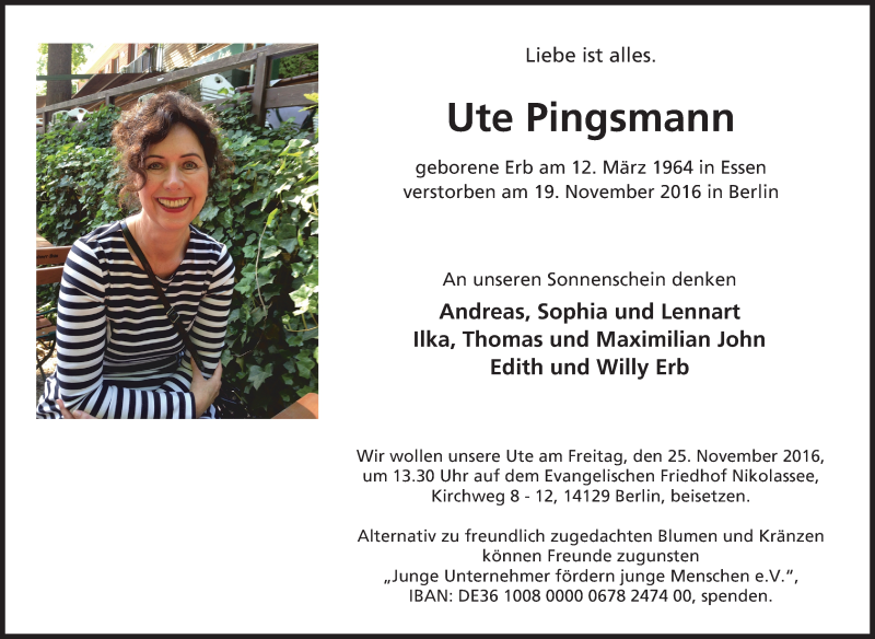 Hier finden Sie alle Traueranzeigen aus der Zeitung, die bisher für Ute Pingsmann erschienen sind. Weitere Traueranzeigen, die in der Zeitung erscheinen, werden hier ebenfalls aufgelistet