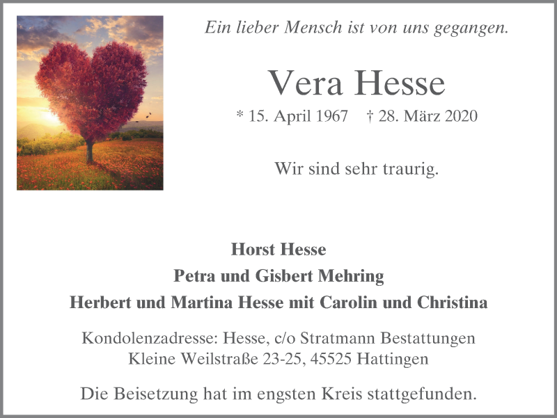 Pflanzen Sie einen Gedenkbaum für Vera Hesse