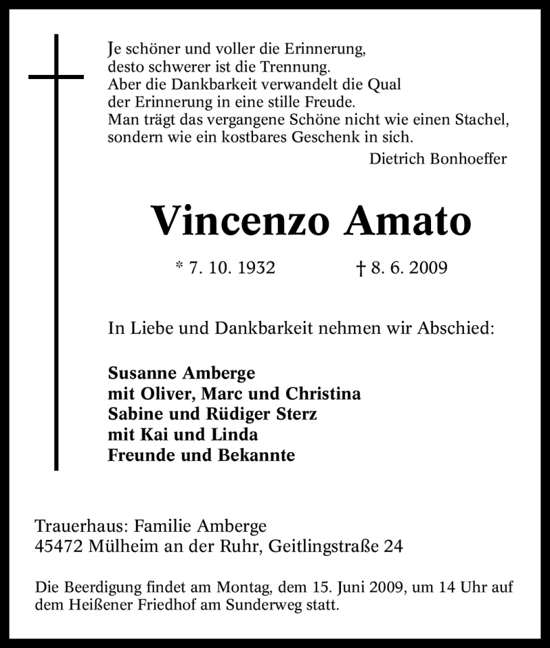 Pflanzen Sie einen Gedenkbaum für Vincenzo Amato