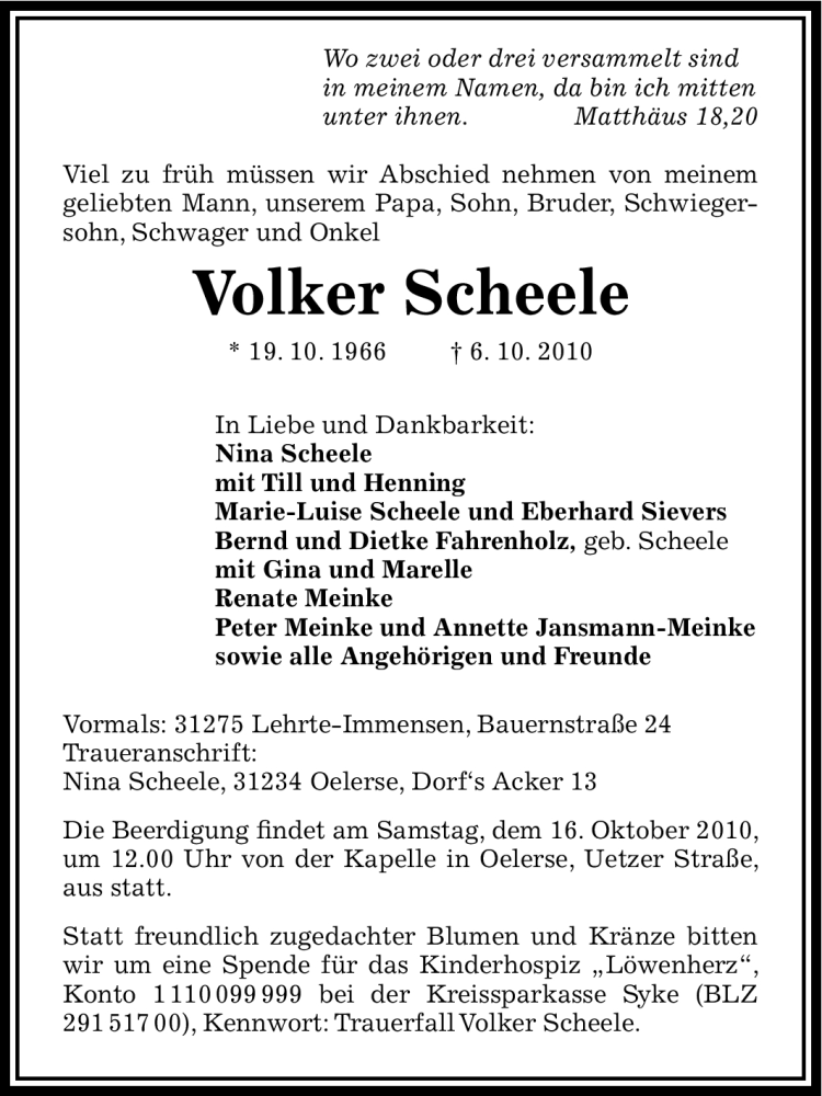 Pflanzen Sie einen Gedenkbaum für Volker Scheele