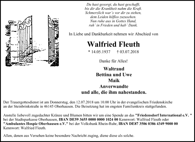 Pflanzen Sie einen Gedenkbaum für Walfried Fleuth