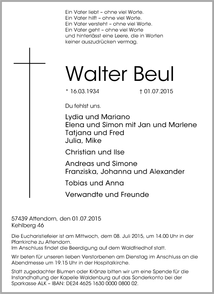 Pflanzen Sie einen Gedenkbaum für Walter Beul