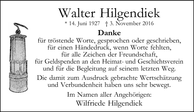 Hier finden Sie alle Traueranzeigen aus der Zeitung, die bisher für Walter Hilgendiek erschienen sind. Weitere Traueranzeigen, die in der Zeitung erscheinen, werden hier ebenfalls aufgelistet