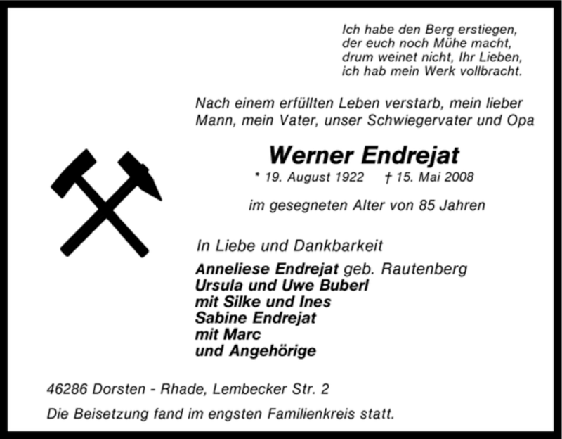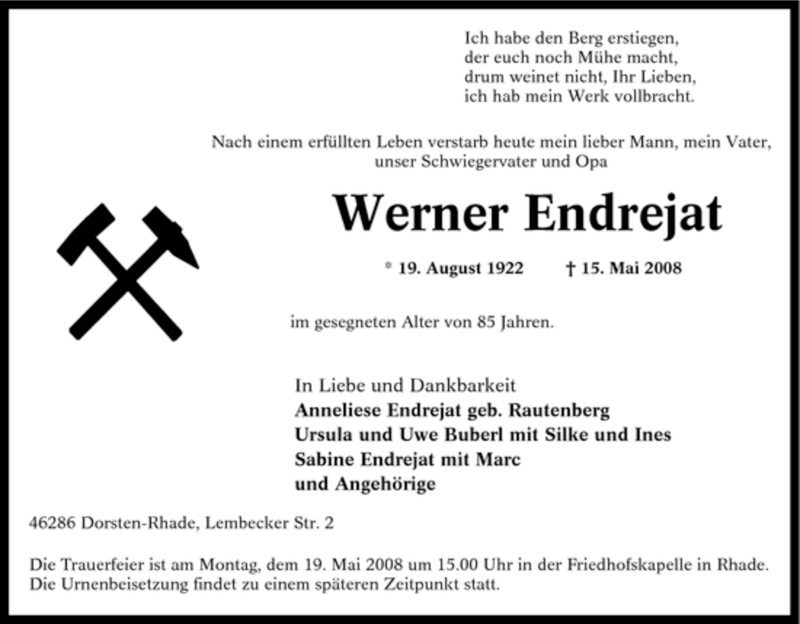 Pflanzen Sie einen Gedenkbaum für Werner Endrejat