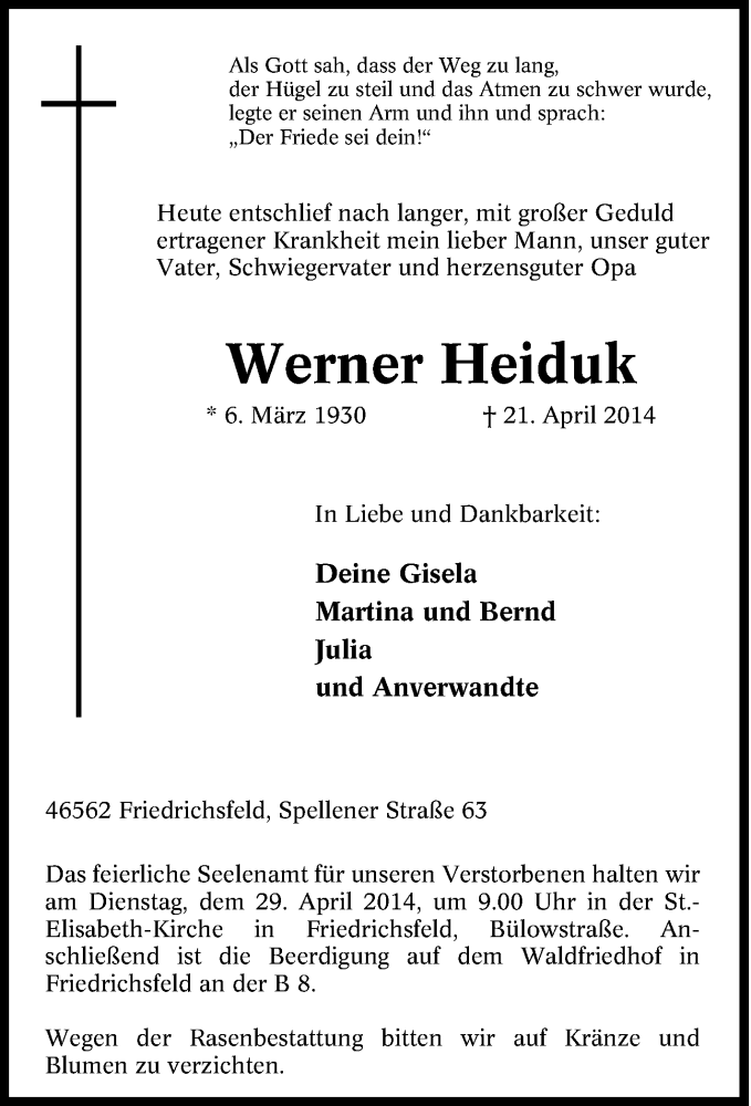 Pflanzen Sie einen Gedenkbaum für Werner Heiduk