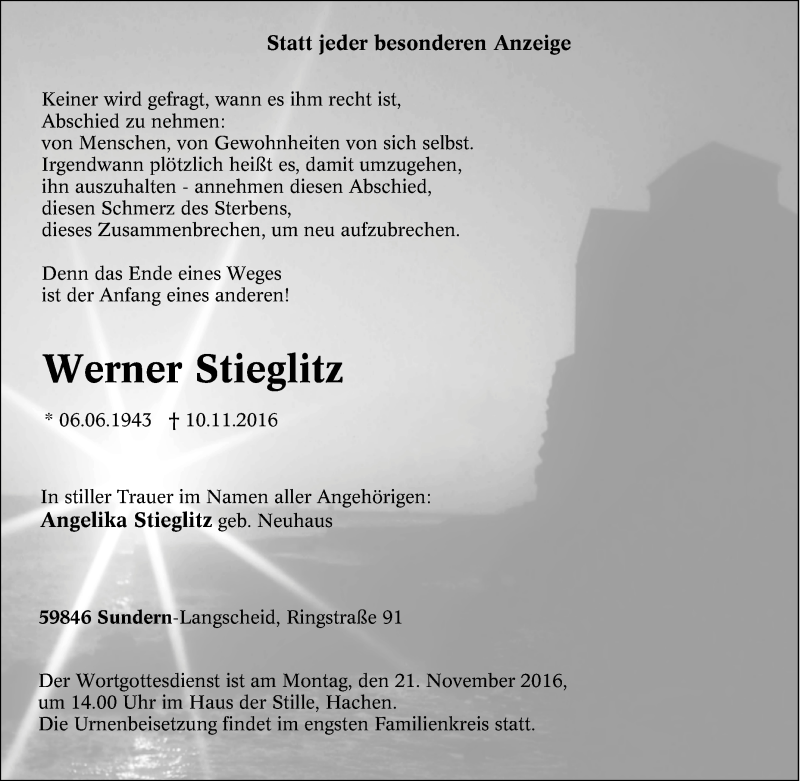 Pflanzen Sie einen Gedenkbaum für Werner Stieglitz