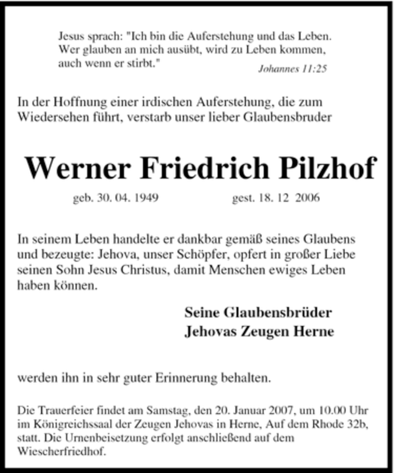 Pflanzen Sie einen Gedenkbaum für Werner Friedrich Pilzhof