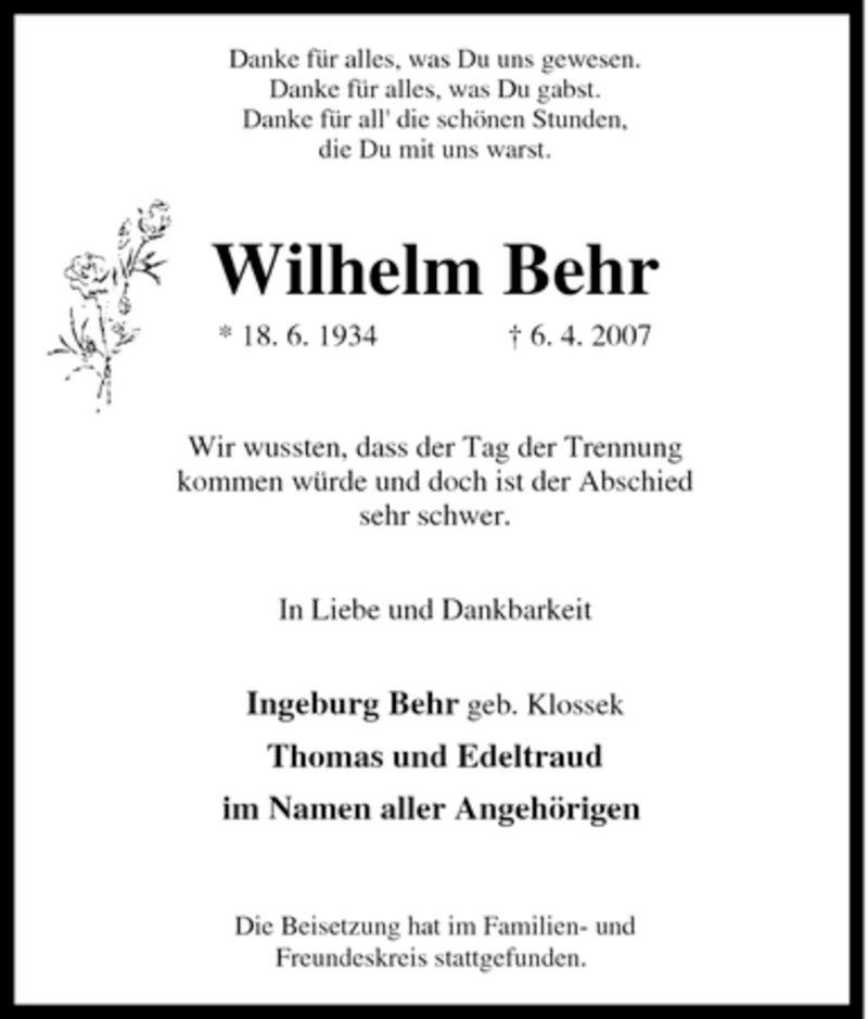 Pflanzen Sie einen Gedenkbaum für Wilhelm Behr