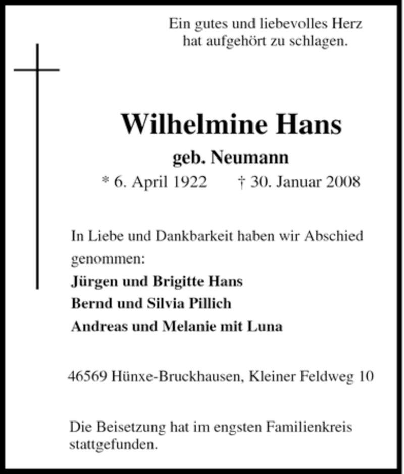 Hier finden Sie alle Traueranzeigen aus der Zeitung, die bisher für Wilhelmine Hans erschienen sind. Weitere Traueranzeigen, die in der Zeitung erscheinen, werden hier ebenfalls aufgelistet