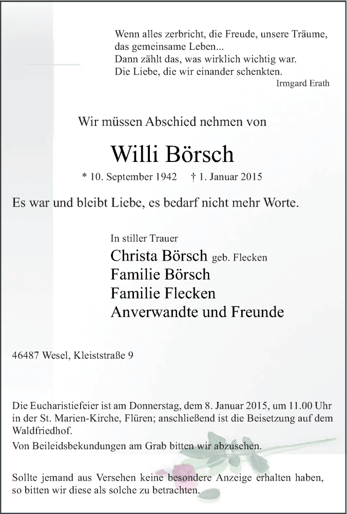 Pflanzen Sie einen Gedenkbaum für Willi Börsch
