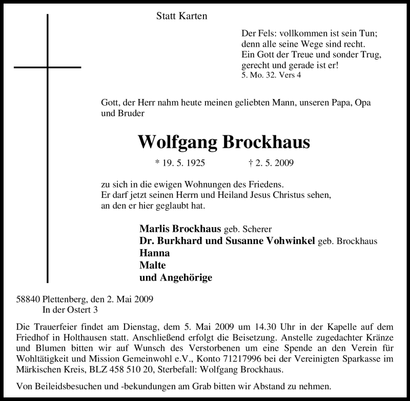 Pflanzen Sie einen Gedenkbaum für Wolfgang Brockhaus