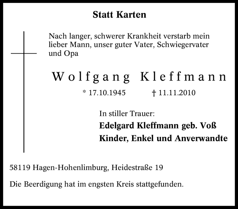 Pflanzen Sie einen Gedenkbaum für Wolfgang Kleffmann