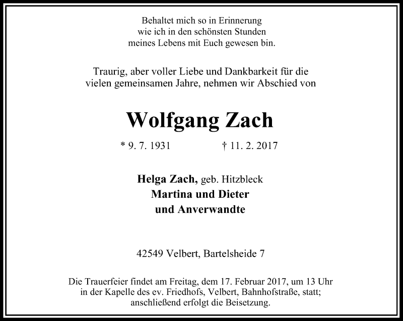 Pflanzen Sie einen Gedenkbaum für Wolfgang Zach