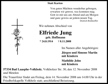 Anzeige Elfriede Jung geb. Hoffmann