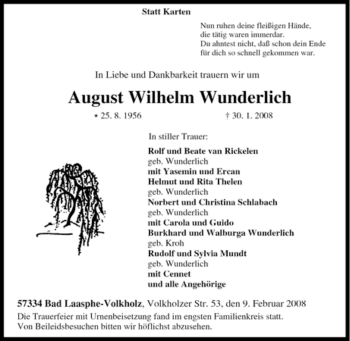 Anzeige August Wilhelm Wunderlich