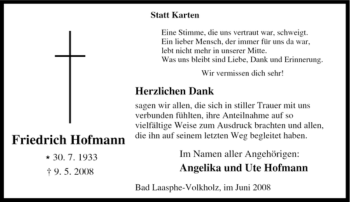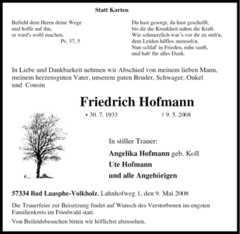 Anzeige Friedrich Hofmann