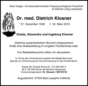 Anzeige Dietrich Klosner