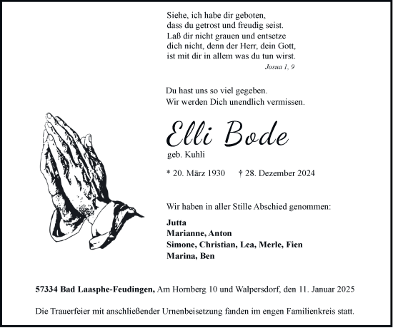 Traueranzeigen für den Suchbegriff "Bad Laasphe Volkholz, Mittelweg"