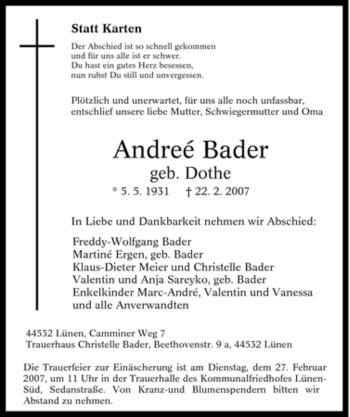Traueranzeigen für den Suchbegriff "Bad Laasphe Volkholz, Mittelweg"