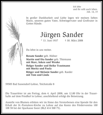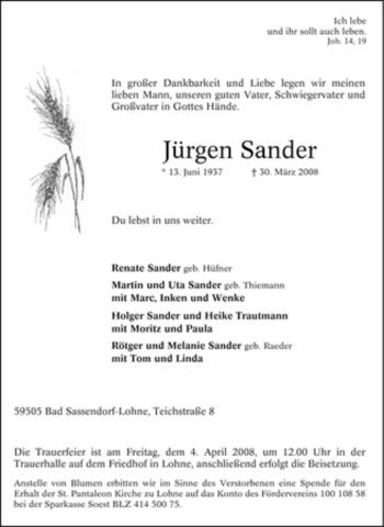 Traueranzeigen für den Suchbegriff "Bad Sassendorf Lohne"