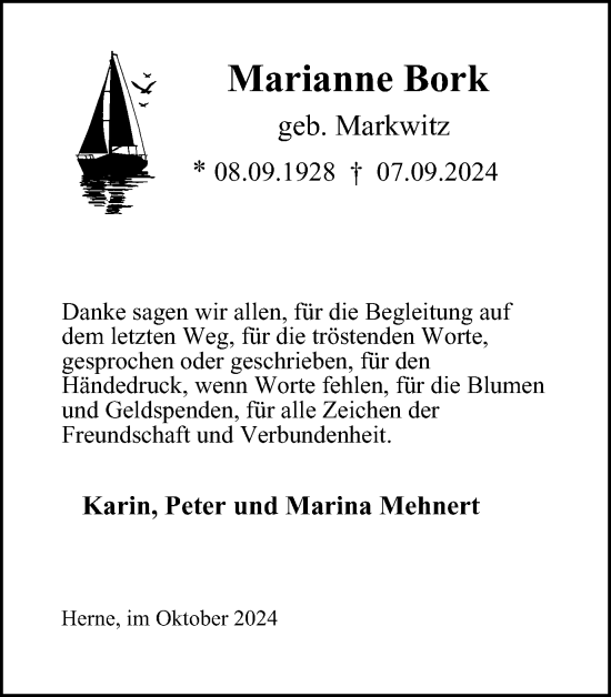 Anzeige Elisabeth Bork geb. Wiedemeier