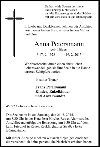 Traueranzeigen für den Suchbegriff "Bür Resse"