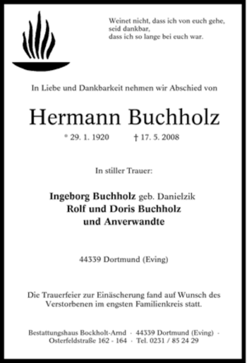 Traueranzeigen für den Suchbegriff "Dortmund Buchholz"