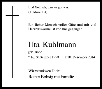 Anzeige Uta Kuhlmann geb. Bode