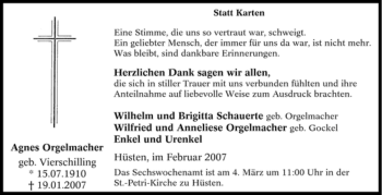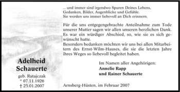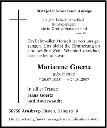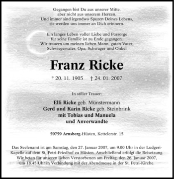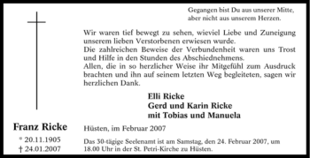 Traueranzeigen für den Suchbegriff "Hüsten"