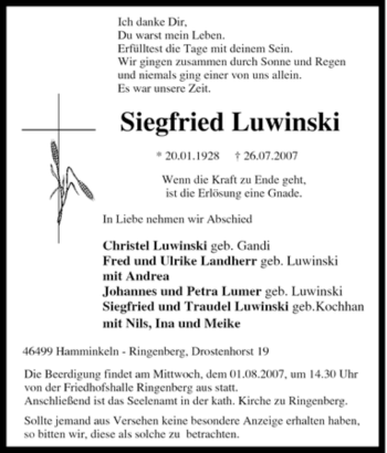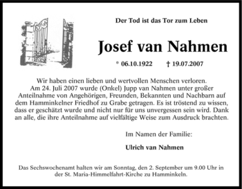 Traueranzeigen für den Suchbegriff "Hamminkeln Mehrhoog"