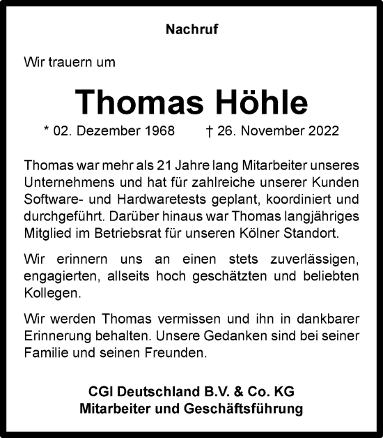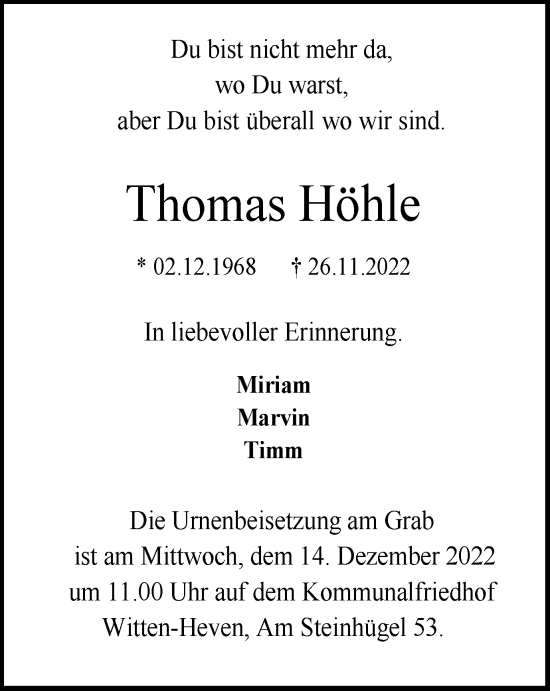 Anzeige Thomas Höhle