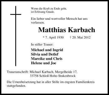 Anzeige Matthias Karbach