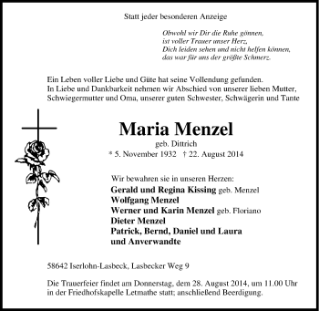 Anzeige Maria Menzel geb. Dittrich