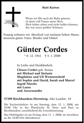Traueranzeigen für den Suchbegriff "Kirchhundem Herrntrop"